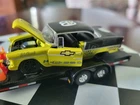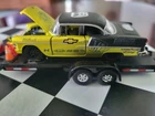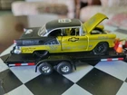 This is M2 Speed Shop Customized Flat Green 1953 CHEVY 3100 TRUCK Its a Ground Pounders series is a 1:64 scale diecast With Add-on's of Trailer Hitch,Tool Box, Air Compressor With Air Hose,1 Gas Can,1 Racing Wheel and tire, With Additional Racing Decals, With A M2 Machines 1955 Chevy Bel-Air With Hood and Doors,it has Add-on's of Racing Decals,On A Auto World Flatbed Car Hauler,With Add-on's to it are Red Igloo Pop Cooler, Jack, 2 Jack stands, 2 Safety Cones, Front and Rear Cable looking car tie downs,Making This Awesome One of a kind must have for any Diecast 1/64 Scale Collector,And Would Look Awesome On Any Collectors Shelf! This limited edition model features a customized design to the Set,All Attachement's Are Attached With Clear Weld Epoxy,Please see all photos and contact me with any questions please, The Set Comes Loose but is wrapped up well for Shipping,Thanks again for looking at my customized Diecast Sets