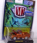 M2 Machines 1956 Ford F-100 Truck Autograph Tom Kelly Sean Taylor 2 Others 1:64 Diecast. Custom Tom Kelly Design, truly one of a kind. Car is new in a sealed package. Package is a plastic clamshell. Includes an open display stand.