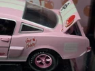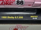 The M2 Machines 1966 Ford Shelby G.T. 350 diecast car in 1:24 scale is a limited edition special edition model from the M2 Machines Coca-Cola series. This pink car features a Cherry Coke theme, comes with a stand, and is part of a Chase series with only 750 produced. It is a unique advertising specimen with the Cherry Coke character family branding.