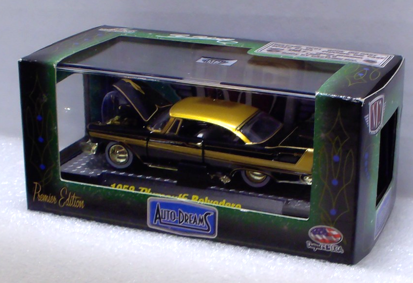 M2 Machines Gold Chase 1958 Plymouth Belvedere 1:64 Diecast 1/750 Limited Edition. Car is new in a sealed package. Box has light edge and corner wear. Includes an acrylic display case.