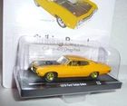M2 Machines Gold Chase 1970 Ford Torino Cobra 1:64 Diecast. Limited Edition 1/750. Car is new in package. Card is in new condition. Includes an open display stand, no case on this model.