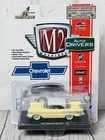 M2 Machines 1957 Chevrolet Bel Air diecast model, 1:64 scale. Features include a die-cast body, real chrome bumpers, rubber tires, and a removable plastic chassis. Includes a display base. Packaging has minor edge wear (see photos). Perfect for collectors or as a gift for classic car enthusiasts.