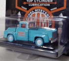M2 Machines Teal/White Chase 1956 Ford F-100 Truck 1:64 Diecast, Limited Edition 1/750. Car is new in a sealed package. Card has light edge and corner wear. Blister is intact. Includes an open display stand.