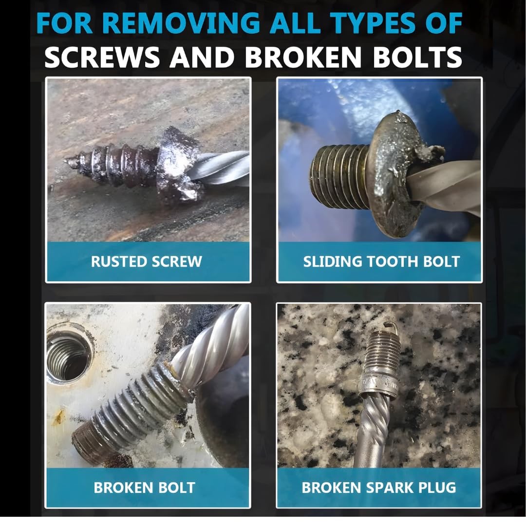 Tired of dealing with stripped, broken, or rusted fasteners? Our screw extractor set is the ultimate solution for removing damaged screws and bolts without the frustration. This complete broken bolt extractor kit includes 5 high-speed reverse drill bits and 5 extractors made for tackling the toughest jobs. Whether you're facing a snapped screw or a seized bolt, this easy out screw extractor set makes removal fast, precise, and hassle-free. Crafted with premium M35 5% cobalt steel, our left hand drill bit set delivers exceptional durability and heat resistance—ideal for repeated use. The 135° split point design improves drilling efficiency and reduces walking on surfaces. Combined with our high-torque bolt remover tools, this kit becomes your go-to stripped screw removal tool for every toolbox. Whether you're a DIYer or a professional mechanic, this stripped screw extractor is designed for all materials—wood, metal, or plastic. The screw remover and extractor set comes organized in a rugged storage case for portability and protection. Perfect as a screw extractor set small for tight spaces or heavy-duty tasks, this ez out bolt extractor set is built to deliver. Includes: 5pcs M35 reverse drill bit extractor set (1/8", 5/32", 3/16", 1/4", 19/64") 5pcs CR-MO broken screw extractor set (#1 to #5) Durable storage box From removing broken bolts to fixing damaged threads, this all-in-one extractor set is your trusted easy out set. Whether you're working on engines, furniture, or appliances, trust our damaged screw extractor set to get the job done. Great for home improvement, automotive repair, and industrial use, this screw extractor kit ensures you’ll never be stuck again. Works as an easy outs extractor sets Reliable extractor kit for international users Includes all tools in one compact extractor kit Don’t waste hours struggling with stuck hardware—upgrade to the best easy out bolt extractor set and make extractions smooth and stress-free. ✅ PREMIUM DURABILITY – M35 COBALT HSS: Made from M35 cobalt-reinforced high-speed steel (HSS), these left-hand drill bits provide superior strength and wear resistance for extended use. ✅ SAVE TIME & EFFORT – EASY BOLT REMOVAL: Quickly extract stuck, stripped, or broken screws and bolts with this professional screw extractor kit. A must-have for home repairs, automotive work, and industrial maintenance. ✅ 135° CUTTING ANGLE – IMPROVED PRECISION: The EZ Out bolt extractor set features a 135° split point tip, allowing faster drilling with reduced resistance. This design ensures a cleaner cut without damaging surrounding materials. ✅ VERSATILE USE FOR WOOD & METAL: Designed for multiple applications, this drill extractor works on wood, metal, and plastic. Ideal for DIY projects, home improvement, automotive repairs, and professional workshops. ✅ 10-PIECE SET WITH STORAGE CASE: Includes 5 left-hand drill bits & 5 bolt extractors. Screw Extractors: #1, #2, #3, #4, #5. Left-Hand Drill Bits: 5/64", 7/64", 5/32", 1/4", 19/64". Compact storage case keeps tools organized and protected.