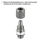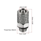 Specification: Color: Silver Tone Material: Electroplating Iron Thread Size: M5x0.8 Overall Size: 15mmx7mm / 0.59 inch x 0.28 inch (W x H) Fit for Air Tube Size: 3.5mmx4mm / 0.14 inch x 0.16 inch(Inner Dia*Outer Dia) Packing List: 1 x Compression Fitting Advantage: Made from electroplating iron for good strength and appearance. The thread design provides a tight sealing performance. The knurl head design is convenient for you to grip and operate, no need for tools Instruction: Easy to install, one side with knurl connect to the air tube and the other side connect to the threaded pipe. NOTE:Please check your thread size of your pipes before ordering.