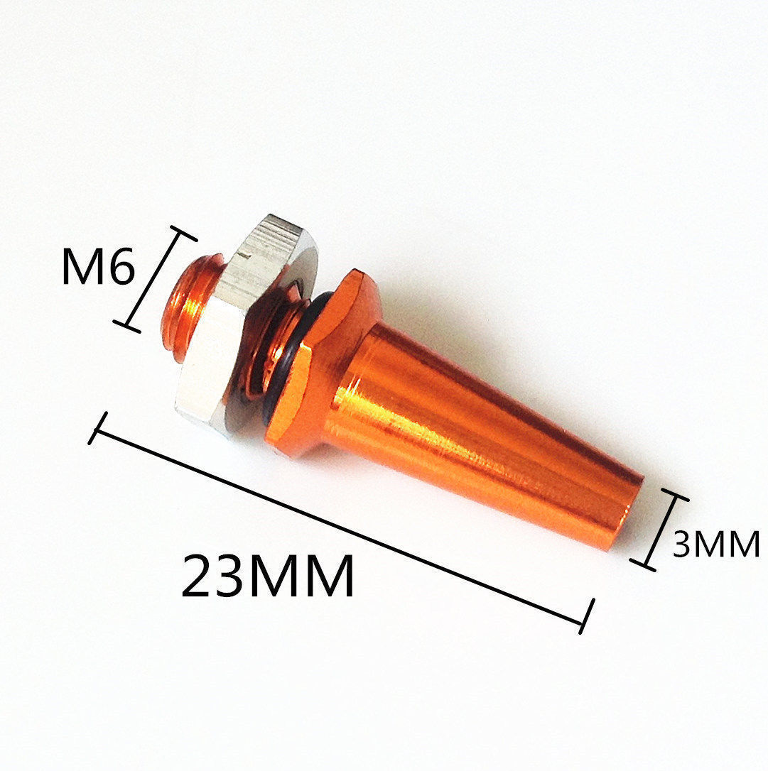 : Length: 23mm : Threaded diameter: 6mm : Material: aluminum : Color: orange ,gold,green,purple,blue,silver for your choice : quantity : 1pc Payment Policy : We only accept payments via PayPal. Shipping Time & Method: Item will be shipped within 3 days after payment is confirmed. Goods will be sent via airmail . Delivery takes about 18-25 day (without holidays). All products have been checked and packaged in good condition before dispatch. Please make sure your address in PayPal is matched with your shipping address before pay. If you would like to change the address, please contact us IMMEDIATELY after your payment. Return policy : After receiving item. 30 days can return Items must be the original packaging. No use. No damage. Buyers bear the freight cost.