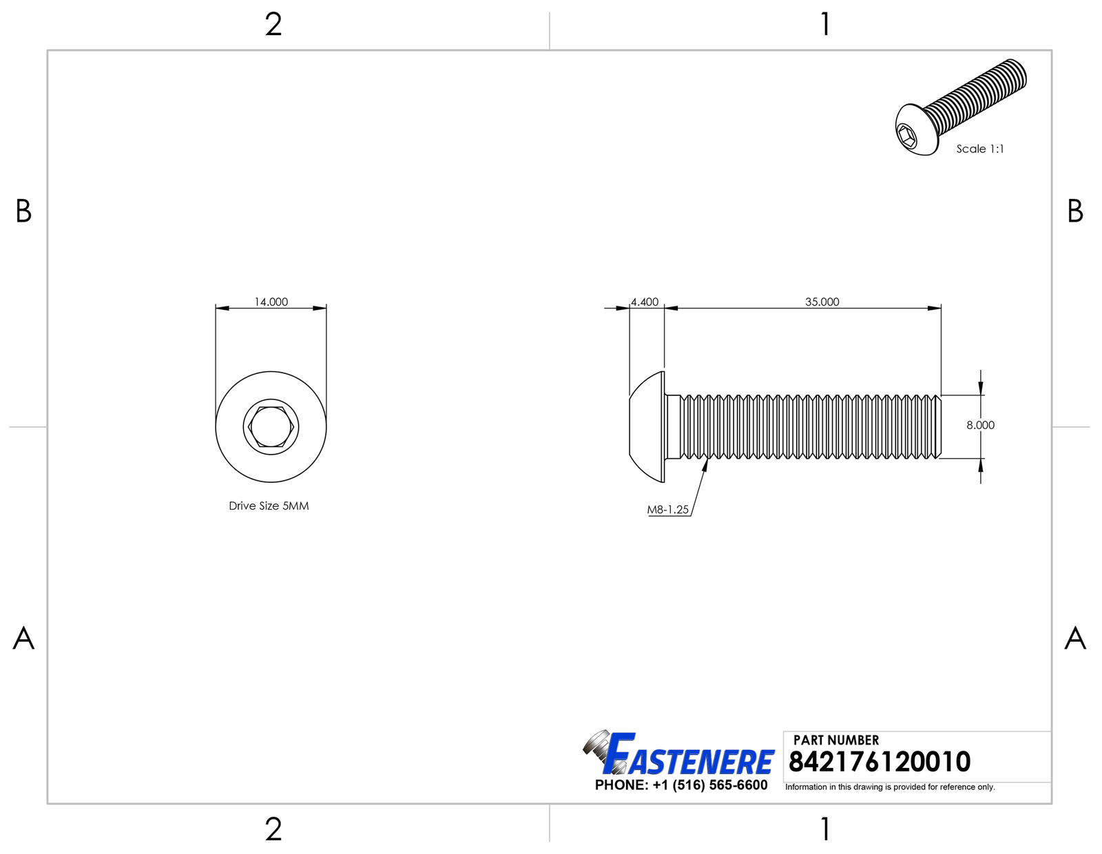 M8-1.25 x 35MM Button Head Socket Cap Screws ISO 7380 Stainless Steel Qty 50 General Product Information Head Style : Button Drive Style : Allen Hex Key Drive Size : 5MM Thread : M8-1.25 Length : 35MM Quantity of Fasteners in Package : 50 Material Type : Stainless Steel Grade Rating : A2-70 Detailed Product Information: Head Diameter : 14MM Head Height : 4.4MM Thread Diameter : 8MM Thread Coverage : Full Thread Key Notes: Socket cap machine screws are precision fasteners that are known for their quality and durability. They are designed to meet challenging fastening applications in a variety of industries such as construction, automotive, and product manufacturing. They are also known for their efficient application performance and endurance. Button is low domed style head with a wide bearing surface that is perfect for use on applications in tight spaces. Hex socket screw drive has a hexagonal recess and may be driven by a hex key or Allen wrench that allows for high torque wrenching in tight spaces. The vast majority of stainless steel fasteners are produced with metals from the austenitic family. Their high levels of chromium and nickel provide tough corrosion resistance and the ability to withstand considerable physical strain without fracturing, albeit at a higher cost than the martensitic varieties. Made of stainless steel grade 18-8 which offers a high level of chemical and corrosion resistance and strength that will out perform and out last all zinc plated fasteners for years with out the need to perform costly and time consuming maintenance. Shipping: All orders placed before 3:30 pm EST Will Ship Same Day Tracking is provided on ALL Orders Priority Mail Shipping service is offered at a discount of only $3.95 UPS Ground UPS Next Day Air is available, Please inquire for pricing Returns : ALL returns are accepted if returned within 60 days. Money Back or exchange guaranteed. NO Restocking Fees. For YOU, we constantly strive to find ways of improving our performance.