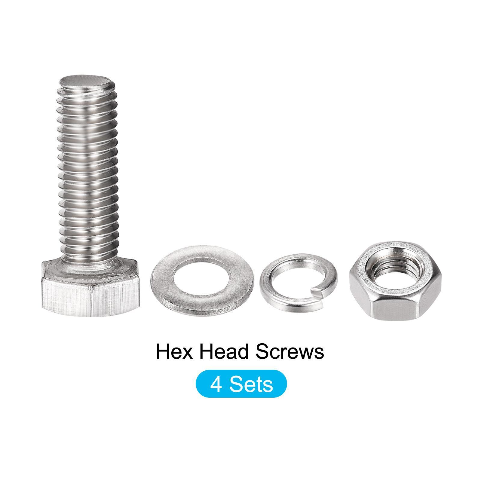 M8x16mm Hex Head Screws Bolts Nuts Flat Lock Washers Kit 4 Sets