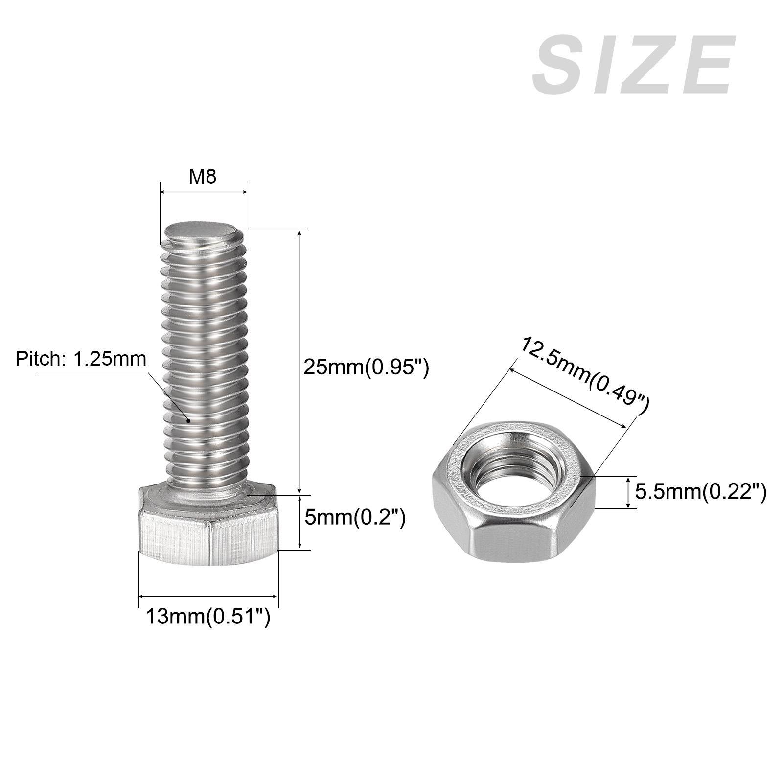 Document APPLY TO - Can be used in house construction and maintenance, machinery assembly, home furniture and appliance, DIY handmade project, etc.SPECIFICATION:Material: 304 Stainless SteelThread Size: M8x25mmThread Pitch: 1.25mmHex Head Size: 13x5mm/0.51"x0.2"(W*T)Nut Size: 12.5x5.5mm/0.49"x0.22"(W*T)Flat Washer Size: 15.5x1.5mm/0.61"x0.06"(OD*T)Lock Washer Size: 12.5x2mm/0.49"x0.08"(OD*T)QUANTITY INCLUDED - 4sets x Bolts, Nuts, Flat & Lock Washers KitsADVANTAGE - Made of 304 stainless steel material which is durable and sturdy. It is anti-rust, anti-corrosion and can be fastened for a long time.Note: Please confirm the size of each component before buying it. Hex Head Screws Bolts, Nuts, Flat & Lock Washers Kits (M8x25mm) 4Sets APPLY TO - Can be used in house construction and maintenance, machinery assembly, home furniture and appliance, DIY handmade project, etc. SPECIFICATION: Material: 304 Stainless Steel Thread Size: M8x25mm Thread Pitch: 1.25mm Hex Head Size: 13x5mm/0.51"x0.2"(W*T) Nut Size: 12.5x5.5mm/0.49"x0.22"(W*T) Flat Washer Size: 15.5x1.5mm/0.61"x0.06"(OD*T) Lock Washer Size: 12.5x2mm/0.49"x0.08"(OD*T) QUANTITY INCLUDED - 4sets x Bolts, Nuts, Flat & Lock Washers Kits ADVANTAGE - Made of 304 stainless steel material which is durable and sturdy. It is anti-rust, anti-corrosion and can be fastened for a long time. Note: Please confirm the size of each component before buying it. Hot Item Payment 1.We accept eBay payment . 2.Payment must be received within 7 business days of auction closing. Shipping 1.We ship to your eBay or Paypal address. Please make sure your eBay and Paypal address is correct before you pay. 2.Items will be shipped within 1-3 business day when we received payment. 3.Delivery time depends on destination and other factors. Description Policy Hex Head Screws Bolts, Nuts, Flat & Lock Washers Kits (M8x25mm) 4Sets APPLY TO - Can be used in house construction and maintenance, machinery assembly, home furniture and appliance, DIY handmade project, etc. SPECIFICATION: Material: 304 Stainless Steel Thread Size: M8x25mm Thread Pitch: 1.25mm Hex Head Size: 13x5mm/0.51"x0.2"(W*T) Nut Size: 12.5x5.5mm/0.49"x0.22"(W*T) Flat Washer Size: 15.5x1.5mm/0.61"x0.06"(OD*T) Lock Washer Size: 12.5x2mm/0.49"x0.08"(OD*T) QUANTITY INCLUDED - 4sets x Bolts, Nuts, Flat & Lock Washers Kits ADVANTAGE - Made of 304 stainless steel material which is durable and sturdy. It is anti-rust, anti-corrosion and can be fastened for a long time. Note: Please confirm the size of each component before buying it. Hot Item Payment 1.We accept eBay payment . 2.Payment must be received within 7 business days of auction closing. Shipping 1.We ship to your eBay or Paypal address. Please make sure your eBay and Paypal address is correct before you pay. 2.Items will be shipped within 1-3 business day when we received payment. 3.Delivery time depends on destination and other factors.