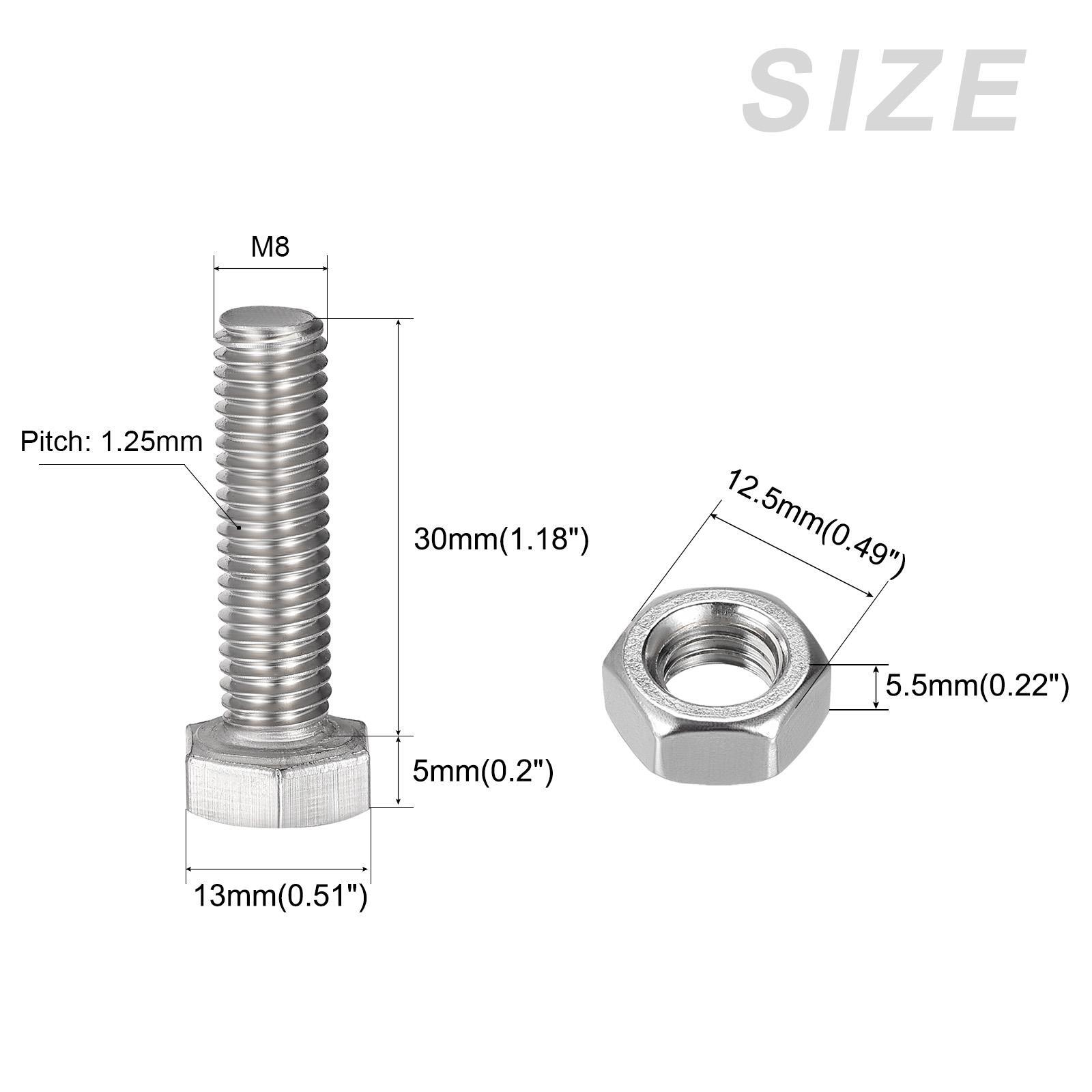 Document APPLY TO - Can be used in house construction and maintenance, machinery assembly, home furniture and appliance, DIY handmade project, etc.SPECIFICATION:Material: 304 Stainless SteelThread Size: M8x30mmThread Pitch: 1.25mmHex Head Size: 13x5mm/0.51"x0.2"(W*T)Nut Size: 12.5x5.5mm/0.49"x0.22"(W*T)Flat Washer Size: 15.5x1.5mm/0.61"x0.06"(OD*T)Lock Washer Size: 12.5x2mm/0.49"x0.08"(OD*T)QUANTITY INCLUDED - 10sets x Bolts, Nuts, Flat & Lock Washers KitsADVANTAGE - Made of 304 stainless steel material which is durable and sturdy. It is anti-rust, anti-corrosion and can be fastened for a long time.Note: Please confirm the size of each component before buying it. Hex Head Screws Bolts, Nuts, Flat & Lock Washers Kits (M8x30mm) 10Sets APPLY TO - Can be used in house construction and maintenance, machinery assembly, home furniture and appliance, DIY handmade project, etc. SPECIFICATION: Material: 304 Stainless Steel Thread Size: M8x30mm Thread Pitch: 1.25mm Hex Head Size: 13x5mm/0.51"x0.2"(W*T) Nut Size: 12.5x5.5mm/0.49"x0.22"(W*T) Flat Washer Size: 15.5x1.5mm/0.61"x0.06"(OD*T) Lock Washer Size: 12.5x2mm/0.49"x0.08"(OD*T) QUANTITY INCLUDED - 10sets x Bolts, Nuts, Flat & Lock Washers Kits ADVANTAGE - Made of 304 stainless steel material which is durable and sturdy. It is anti-rust, anti-corrosion and can be fastened for a long time. Note: Please confirm the size of each component before buying it. Hot Item Payment 1.We accept eBay payment . 2.Payment must be received within 7 business days of auction closing. Shipping 1.We ship to your eBay or Paypal address. Please make sure your eBay and Paypal address is correct before you pay. 2.Items will be shipped within 1-3 business day when we received payment. 3.Delivery time depends on destination and other factors. Description Policy Hex Head Screws Bolts, Nuts, Flat & Lock Washers Kits (M8x30mm) 10Sets APPLY TO - Can be used in house construction and maintenance, machinery assembly, home furniture and appliance, DIY handmade project, etc. SPECIFICATION: Material: 304 Stainless Steel Thread Size: M8x30mm Thread Pitch: 1.25mm Hex Head Size: 13x5mm/0.51"x0.2"(W*T) Nut Size: 12.5x5.5mm/0.49"x0.22"(W*T) Flat Washer Size: 15.5x1.5mm/0.61"x0.06"(OD*T) Lock Washer Size: 12.5x2mm/0.49"x0.08"(OD*T) QUANTITY INCLUDED - 10sets x Bolts, Nuts, Flat & Lock Washers Kits ADVANTAGE - Made of 304 stainless steel material which is durable and sturdy. It is anti-rust, anti-corrosion and can be fastened for a long time. Note: Please confirm the size of each component before buying it. Hot Item Payment 1.We accept eBay payment . 2.Payment must be received within 7 business days of auction closing. Shipping 1.We ship to your eBay or Paypal address. Please make sure your eBay and Paypal address is correct before you pay. 2.Items will be shipped within 1-3 business day when we received payment. 3.Delivery time depends on destination and other factors.