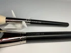 MAC Cosmetics 140s and 137s Brushes 100% authentic and rare! Both brushes are made from 100% synthetic fibers. Brush 140s was a limited edition release and discontinued ---a RARE find--retail value $50 USD MADE IN CHINA! Brush 137s is currently offered at M.A.C. for $44 USD MADE IN JAPAN! Easy to clean and ideal for professional use. These are excess inventory, brushes are GENTLY USED in excellent condition with only minor wear to the lettering on the 137s. (Ebay does not offer a used option for the title). Each brush has been professional cleaned and sanitized for immediate use. Brushes come from a former makeup artist that is downsizing and/or selling excess stock. Look out for more brush listings. ALL SALES ARE FINAL - -so please exam the photos closely! If you have any questions or require additional photos please do not hesitate to reach out. According to maccosmetics.com: " 137S A long-haired blending brush for the face. This ultra-soft and silky tapered brush allows for a light dusting of any powder, making it perfect for an all-over wash of colour. M∙A∙C professional brushes are hand-sculpted and assembled using the finest quality materials. Our 100% synthetic brushes incorporate the latest innovations in fibre technology for superior performance and improved longevity."