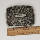 MAC Cosmetics Employee Y2K Silver Belt Buckle Measures Approx 4" L x 2.5" H Gently Used Condition Unknown Material Weight: 1 lb wrapped and boxed