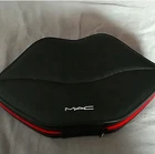 MAC Cosmetics Lip Shaped Makeup Case Vanity Storage Box ~ Black Faux Leather NIP.