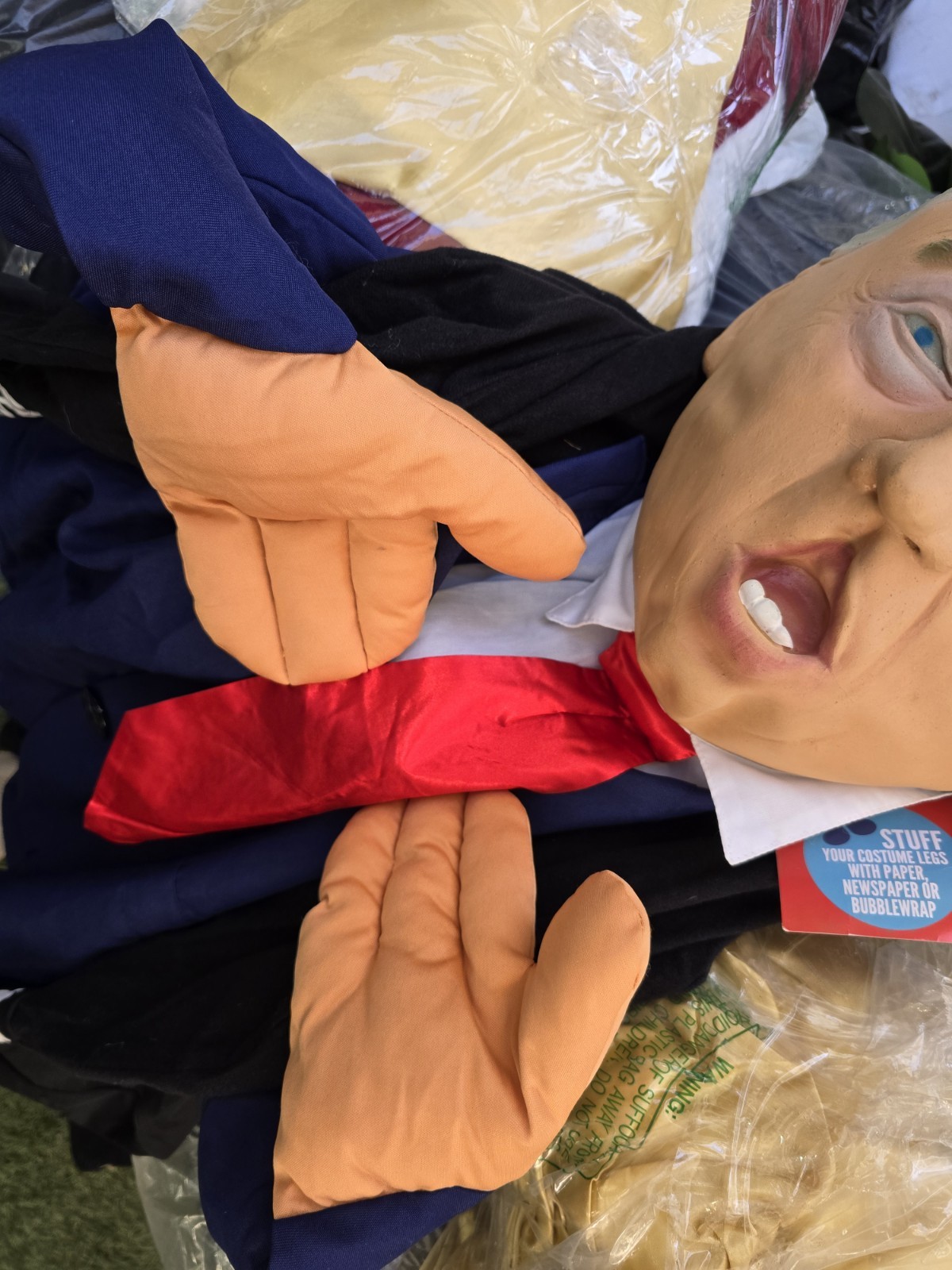 The Donald Trump costume by Morphsuits is a one-piece outfit designed for adults and big kids. It features a multi-color design that mimics the signature style of President Donald J. Trump, including the iconic MAGA hat. This Halloween-themed costume is made in the United States and is perfect for those looking to dress up in a humorous and recognizable outfit. Whether for a fancy dress party or just for fun, this costume is sure to make a bold statement.