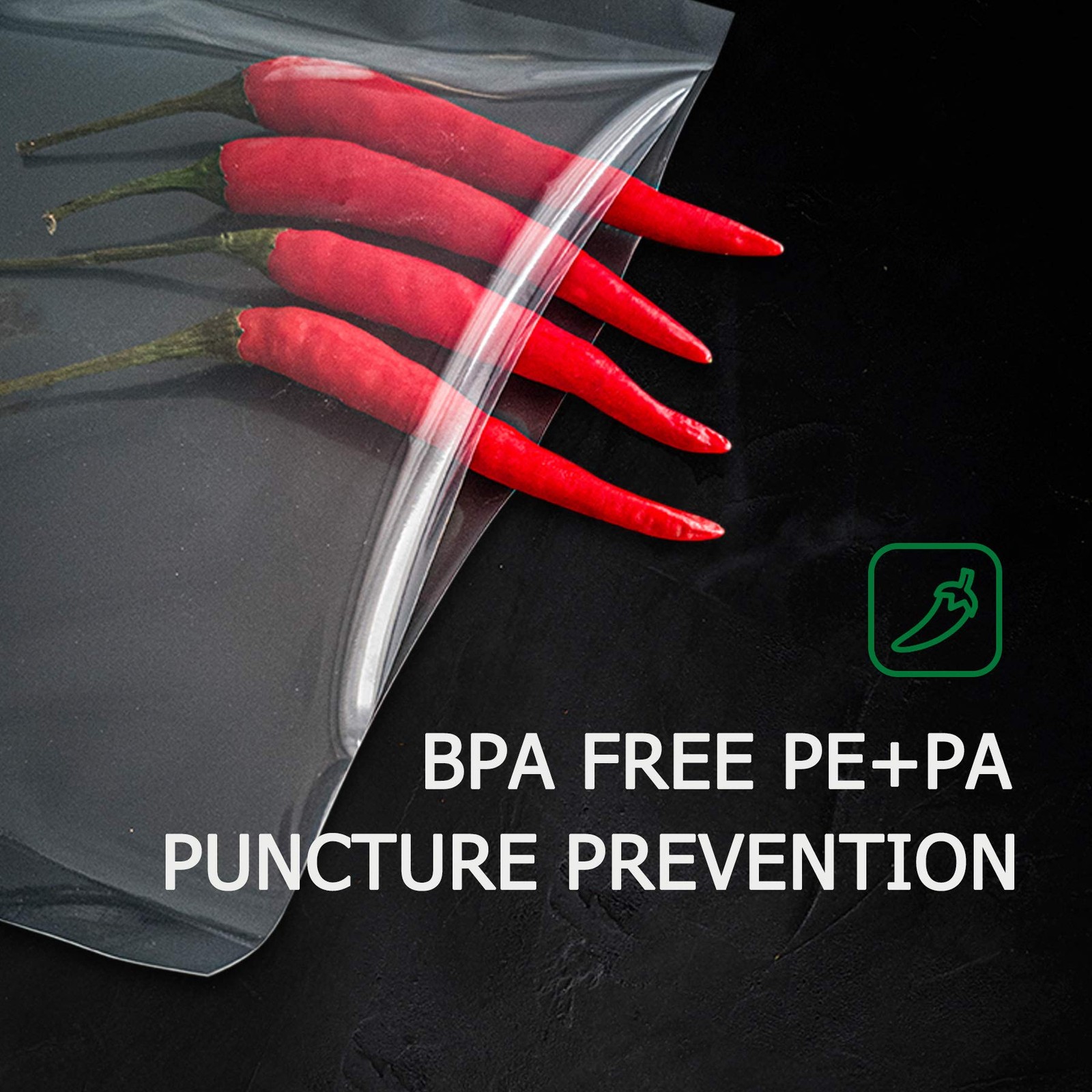 Keep Food Fresh, Enjoy More has been focused on vacuum sealer bags for over a decade and our vacuum preservation system is dedicated to providing consumers with an easy way to enjoy fresh ingredients, reduce waste and live a healthier life. Product Name: nozzle type vacuum sealer smooth bags / Chamber machine pouches Quantity & Size: 100pcs 8" x 12" Material: Food-grade high-density nylon PA+PE Compatible Vacuum Sealers: Work with nozzle type vacuum sealers (MS175 & 180) and all chamber vacuum machines, Not compatible with clamp-type vacuum sealers such as FoodSaver, Seal-A-Meal, GERYON, Mueller + more Why Choose Vacuum Sealer Bags: 1) Pre-cut Design No need to spend time to customize bag’s length and size. 2) Premium Quality Materials BPA Free, good for food storage. 3) Good Toughness PA+PE, thicker material, not easy to beak. 4) High and Low Temperature Resistant Can be used for cooking or freezing. 5) Easy Open Tear Notch For ease of opening vacuumed pouch without the need of scissors. 6) Keep Fresh for Longer Time Isolate the air, effectively lock the moisture of the food. Compatible Vacuum Sealers: For nozzle vacuum sealers, other chamber vacuums and heat bag sealers - NOT for Use with Food Saver Household Vacuum Sealers. Safe Material & Heavy Duty: Made of food grade PA+PE material, BPA Free, simmer, freezer and microwave safe, great for cooking and meal prep. 3 mil thick smooth panels for optimum clarity, high barrier vacuum chamber bags eliminating freezer burn and dehydration. Tear Resistant & Puncture Prevention: Excellent high density nylon, good toughness and resistant tearing. These chamber vacuum sealer bags block moisture and oxygen, effectively sealing soups, sauces, marinades, meats and fish. Reusable and Convenient: pre-cut vacuum chamber bags are designed for reuse and feature an easy-open tear notch, providing quick and effortless access to your stored items. Versatile Applications: smooth bags provide professional-grade performance at an affordable price and are perfect for commercial and professional kitchens, commissaries, grocery stores and home processing.