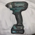 The MAKITA DT03 Cordless 12V 1/4" Impact Driver includes a lithium-ion battery and the hand tool. This impact wrench operates on a 12V battery and features a compact design for easy handling. It is designed for efficient driving and fastening tasks, making it a convenient tool for various projects. The Makita brand ensures quality and reliability in power tools, ideal for both professional and DIY use. No charger included!