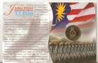 Composition: Nordic Gold Cuprum , Zink , Aluminium , Sn ssuance of Commemorative Coins in Conjunction with the 75th Anniversary of the Establishment of the Royal Malaysian Navy Embargo : For immediate release 27 Apr 2009 Bank Negara Malaysia is issuing three types of commemorative coins to commemorate the 75th Anniversary of the Royal Malaysian Navy. These commemorative coins were launched today by H.R.H the Sultan of Selangor, Sultan Sharafuddin Idris Shah Al-Haj Ibni Almarhum Sultan Salahuddin Abdul Aziz Shah Al-Haj, the Captain-in-Chief of the Royal Malaysian Navy, at the Royal Malaysian Naval Base in Lumut, Perak. These commemorative coins are legal tender and their specifications are as follows: 1. Gold Commemorative Coin (proof) This proof coin is made of gold with 999.9 purity and weighs 7.96 grams. It has a face value of RM100 and will be sold at RM1,200 a piece. The mintage quantity is limited to 100 pieces. 2. Silver Commemorative Coin (proof) This proof coin is made of Sterling silver with 92.5 purity and weighs 21.00 grams. It has a face value of RM10 and will be sold at RM150 a piece. The mintage quantity is limited to 300 pieces. 3. Nordic Gold Brilliant Uncirculated (B.U) Commemorative Coin The Nordic Gold (B.U) coin has a face value of RM1 and will be sold at RM10 each. The mintage quantity is 10,000 pieces. These commemorative coins are also available in sets of 3 and sets of 2. The set of 3 consists of the gold, silver and Nordic gold proof coins. It will be sold at RM1,450 per set and there are only 150 sets available. The set of 2 consists of the silver and Nordic gold proof coins. These sets will be sold at RM200 per set and there are 200 sets available. Detailed specifications of these coins are as per Attachment I. Coin Design The descriptions of the 75th Anniversary of the establishment of the Royal Malaysian Navy commemorative coins' designs are as follows: 1. The Obverse Side of the Coin Depicts the Royal Malaysian Navy's insignia in the centre of the coin. The words "Ulang Tahun Ke-75" and "Tentera Laut Diraja Malaysia" written in Jawi appear on the upper and lower circumference of the coin, respectively. 2. The Reverse Side of the Coin Depicts Royal Malaysian Navy's first Scorpene submarine, which is named KD Tunku Abdul Rahman after the first Prime Minister (expected to arrive in July 2009). The words "Jubli Intan TLDM" are depicted in the center of the coin. The words "BANK NEGARA MALAYSIA" appear on the upper circumference, and the denomination appears on the lower circumference of the coin. Sales Outlets These commemorative coins are minted and distributed by Bank Negara Malaysia and will be available for sale from 28 April 2009 at Bank Negara Malaysia's headquarters (BNMLINK) and its branches located in Pulau Pinang, Johor Bahru, Kuala Terengganu, Kota Kinabalu and Kuching. Bank Negara Malaysia 27 April 2009