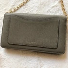 Marc Jacobs Recruit Leather Crossbody Bag Beautiful gray soft pebbled leather Gold stamped and gold hardware Bag easily converts to wallet, clutch or crossbody Added non branded 46” gold crossbody chain Exterior slip pocket Interior slip, zip and wall pockets 16 card holders A few small marks Please inspect pictures with clarity for all pictured marks. In overall great condition! Approximately 8” x 4.75” x 1”