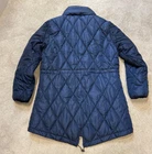 Ladies Blue hooded jacket from MARKS & SPENCER High neck full zip fastening Fully lined & lightly padded Soft fleece collar lining Front zipped pockets Packable Hood Material: 100% polyester Lining& wadding : 100% polyester Label size: UK 16 Garment measures: Pit to pit: 22" Pit to hem: 21" Neck to hem: 35" Pit to cuff: 18" Stock ref: 3688 / 17015