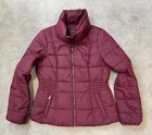 Ladies Red padded hooded jacket from MARKS & SPENCER High neck full zip fastening Fully lined &padded Front pockets packable Hood Material: 100% polyester Lining& wadding : 100% polyester Label size: UK 10 Garment measures: Pit to pit: 19" Pit to hem: 13" Neck to hem: 24" Pit to cuff: 18" Stock ref: 3686 / 17015