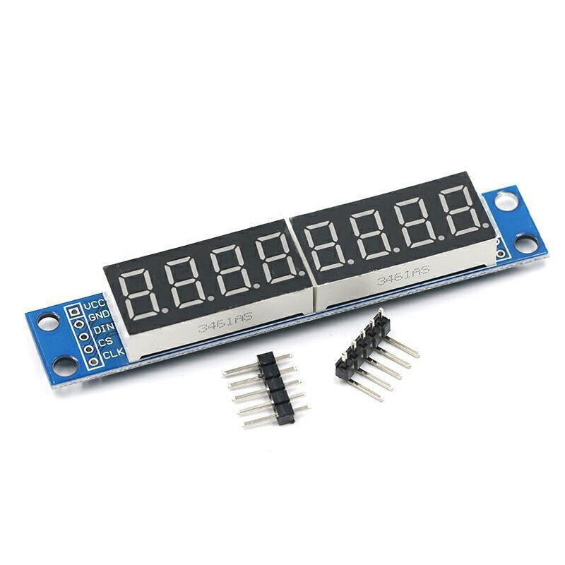 Describe: 100% new and high quality Material:Metal Color: see picture Size:Longth 8.2cm/3.23in,width 1.5cm/0.59in,height 1.2cm/0.47in Package Includes: 1Pc MAX7219 8-bit Digital Tube Display Control Module The MAX7219 is an integrated serial input/output common cathode display driver that connects a microprocessor to an 8-digit, 7-segment digital LED display. It can also be connected to a bar graph display or 64 independent LEDs. It includes an on-chip B-type BCD encoder, multi-channel scanning loop, segment driver, and an 8*8 static RAM to store each data. There is only one external register used to set the segment current of each LED. A convenient four-wire serial interface connects to all common microprocessors. Each data can be addressed and updated without rewriting the entire display. The MAX7219 also allows the user to choose whether to encode or not encode each piece of data. The entire device contains a 150μA low-power shutdown mode, analog and digital brightness controls, a scan limit register allowing the user to display 1-8 bits of data, and a detection mode that lights all LEDs. Only 3 IO ports are needed to drive 8-bit digital tubes! The digital tube displays without flickering! Support cascade! The digital tube is connected to the PCB board using a 2.54mm pitch round hole pin header, making it easy to replace the digital tube! The four corners of the PCB board are fixed with copper studs, which can effectively prevent accidents such as short circuits! The digital tube is a 0.36-inch 4-bit common cathode digital tube. This module is compatible with 5V/3.3V microcontroller (51/AVR/STM32....) Wiring instructions (take the provided program as an example, you can connect any IO port, just modify the port definition in the program): VCC→5V GND→GND DIN →P00 CS →P01 CLK→P02 Precautions: 1. Never connect VCC and GND reversely to avoid burning out the chip. The P0 port of the 2.51 microcontroller needs to be connected to a pull-up resistor. If your microcontroller does not have a pull-up resistor, you can connect the data line to other ports. Shipping list: 1. MAX7219 digital tube display module 1 2. Straight pins 5P*1 pcs. Curved pins 5P*1 pcs. 1 copy of 7.51 microcontroller driver (single module display program and cascade module display program) Note: 1. Please allow 5-10mm differences due to manual measurement, thanks. 2. The actual color of the product may be slightly different from the picture, and the website is caused by various factors such as the brightness of the monitor and the brightness of the light. On Jan 3, 2025 at 02:07:28 PST, seller added the following information: