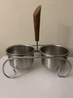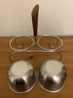 Vintage MCM Salad Dressing Condiment sauce Server serving Caddy Metal bowls and Wood Handle Mid Century. Good vintage condition-refer to pics