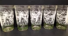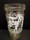 Set of 5 Vintage Hazel Atlas 'Prong-horn Antelope' 14/16 oz Glass Tumblers. They are 5 3/4" tall, 14 oz capacity. The glasses have a 'raised' white painted design on outside. The design is mostly in white, except for the grass & cactus along the bottom, which is green. There are outlines of mountains, cactus & other vegetation, 2 adult prong-horns & 2 babies on each glass. Handwriting is recommended. They are all in excellent condition.