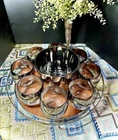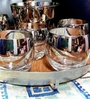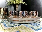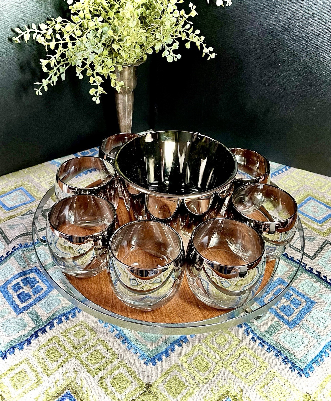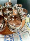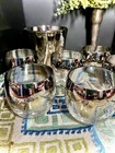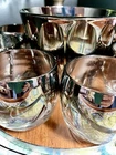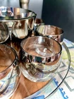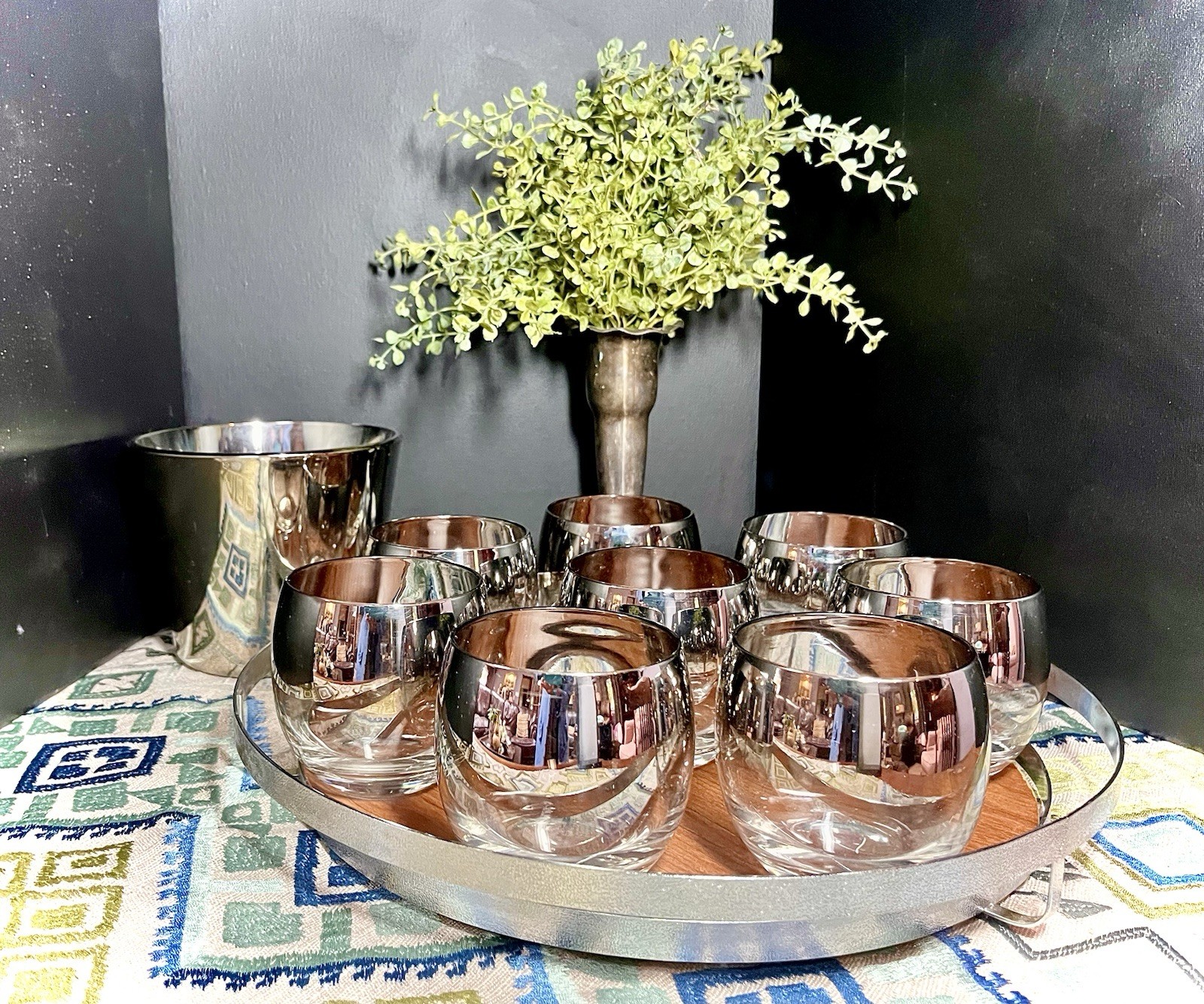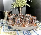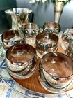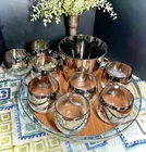 The MCM Mercury Ombré Viteron Queen’s Lusterware Roly Poly Barware 10 Pc Set is a vintage collection of round-shaped tumbler glasses, an ice bucket, and a tray, made popular again by the ever-loved Mad Men TV series. These sweet round tumblers are reminders of the time of the Space Age and its mercury/mirror finish was all the rage of the Nuclear Family! It is perfect for all occasions and would make a great gift. Manufactured in the 1960s by Queens Lusterware, this American-Mid-Century themed barware set is a stylish addition to any home bar (recommended hand wash only for maintenance). Please note that the “wood” tray is particle board. It is removable. (Would be lovely replaced with a mirror!) The mercury ombré is in wonderful condition - Please use photos as part of description. I did my best to provide photos that would answer most of your questions (condition, size & shape, wear due to age, etc.), but should you need further information, please don’t hesitate to message me! 💝 100% of your purchase goes to provide meals, shelter and hope through our Addiction Recovery Program here at The Market Street Mission, Morristown, NJ. Thank you!
