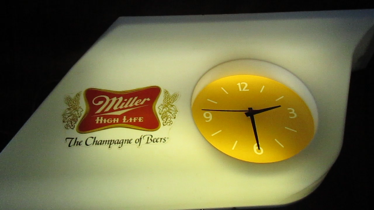 Description: 20/44/21/16 Book # 311 Mid Century Modern SHARK FIN Miller High Life Champagne of Beers Lighted Clock & Sign. Circa 1977 – Milwaukee Wisconsin USA Made by EVERBRITE Electric Signs Inc. in Wisconsin- Working Clock 10” across- with minute hand present and working. It is 38” wide x 15” tall and 7.5” deep Flat area on top is 24” W x 7.25” deep Unpacked weighs 10 pounds Pull cord light switch on the bottom turns the lights ON and OFF, but clock runs as long it is plugged in. Non- polarized 2 prong outlet on top Clock and lights are working, used bulbs included but not guaranteed to survive shipping. Nice vintage condition- Clean, no cracks or breaks, one chip on the upper corner to the right, and some fleabites to edges. Please zoom and view all pictures as they are part of the description. Email me with any questions you may have. I DO MY BEST TO DESCRIBE EVERY LISTING BUT I AM NOT AN EXPERT AND ITEMS ARE SOLD “AS IS”. My idea of great/good may be different than yours, so EXAMINE PHOTOS CAREFULLY since they are binding and a supplement to the word description in case, I should miss something. If I fail to mention something, it does not qualify as “item not as described” if it shows in my pictures. EACH PHOTO IS WORTH A THOUSAND WORDS AND THEY ARE OF THE EXACT ITEM YOU WILL RECEIVE. RETURN POLICY: Returns are acceptable ONLY if the item is defective, or grossly misrepresented. THIS MEANS I DO NOT ACCEPT RETURNS FOR FIT, SIZING, COLOR ISSUES, OR BUYER'S REMORSE. Please note: Buyer pays all return shipping and fees. · FEEDBACK I do not leave a feedback until the end of a transaction. The transaction is considered over once I receive feedback from you confirming that you have received it and expressed satisfaction with it. If you are unsatisfied with your purchase, please contact me before leaving a neutral or negative feedback- so I can fix the issues. Thanks again for shopping at our EBay store and look forward to serve you. Postage is fully tracked Email me with any questions. No reasonable offer refused.