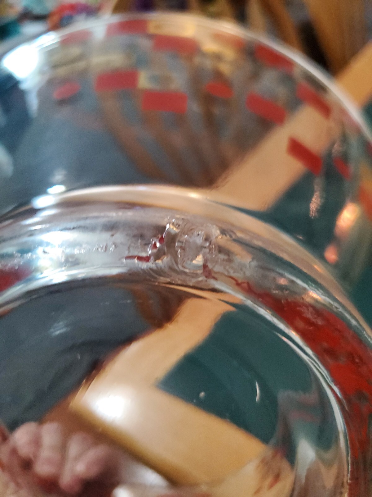 This retro bowl is a stunning statement piece—the bold orange and gold design pops against the clear glass, giving it a fun mid-century vibe. Perfect for chips, snacks, or even as a stylish centerpiece! Hand wash only to keep its vintage charm intact. Love the size—just right for entertaining. A fantastic find for MCM collectors!