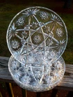 Up for bid here is a set of (4) mid century Anchor Hocking clear sturdy glass sandwich/dinner plates in the EAPC Early American Prescut aka Star of David fan and star pattern, ca 1950's-1960's. Please excuse the camera reflection glares, white spots, and shadows. The plates are in excellent pre-owned condition with no chips, cracks, nicks, cloudiness, fractures, or repair. Please see pics as they are part of the description. Each plate measures approx. 11" across by 1" tall. The very bottoms are not signed. Folk s, this is a beautiful set of (4) sturdy Anchor Hocking Prescut sandwich/dinner plates and they would go wonderful in a collection or home. U SPS Ground/Priority and FedEx Ground/Home Delivery mail true calculated shipping costs is based on a insured well wrapped and packed 11 pound shipment, box size 12Lx11Wx7H. If you would like to see all the available shipping services with calculated shipping costs before placing a bid, please look under the Shipping & Payments tab above the Item Specifics on our auction page or scroll down to the Shipping, returns & payments section and hit the small arrow on the right of Returns, thanks. NO WORRIES ... YOU CAN BID HERE IN CONFIDENCE! We are a true U.S. seller, NOT a drop shipper and item ships from our U.S. location! As always ... Low Opening Bid and Never a Reserve! Plus, we NEVER end an auction early or CANCEL a bid after the auction has ended! PLEASE BID ONLY IF YOU ARE SERIOUS and INTEND TO PAY IF YOU ARE THE SUCCESSFUL WINNER! Our quality merchandise come directly from Estate Sales, private homes, thrift shops, and local auctions hand picked and purchased by my husband and me, for you. As most of you may know, most vintage or used items will have some age and/or wear, and here we like to describe as accurate as possible and show many photos, so you know exactly what you are bidding on. So please read our detailed description and look at the pics as they are part of the description. Lord knows we are all only human and do make mistakes, but we honestly try very hard not to here so please rest assure and bid with confidence. Typically, our photos are shot outdoors under natural lighting on a not so fancy old railroad tie, rail, against our home, or somewhere outdoors or indoors, so please excuse any camera reflection glares, white spots or specks and shadows. Yes, we are old school and our descriptions also may be more lengthy than others, but we like you know exactly what you are buying/bidding on so there are no surprises. Please read the entire description, see all photos and ask any questions before placing a bid. All emails/messages are answered. We are rural and ship by USPS Ground/Priority and FedEx Ground/Home Delivery (true calculated shipping) and (free shipping) for local pick-up. We also recycle and use over-sized boxes and new high quality packaging materials to ensure your item(s) will arrive to you safe and unharmed. We do not charge for boxes, packaging materials, gas, or handling. We do not profit any money from shipping costs or sales tax. You are only charged true actual calculated postage and all items are shipped fully insured with carrier. We ship same or next day unless it is a holiday or a weekend, then shipment will be the following business work day. Payment is due within 3 days of close of auction. Unless you have made prior arrangements with us, please pay within the allotted time frame to avoid a strike against your account. North Carolina buyer must pay 7% sales tax. We combine shipping to save you money and give shipping discounts on 3 or more auction wins. The eBay combined shipping calculator is not always correct, so if you win 2 or more auctions please request or wait for a combined invoice for appropriate total. Our items come from a smoke free home. We do have many pets, but all items are stored in a pet free environment until delivery day. Claims/Refunds - Please DO NOT request a return on merchandise damaged in shipping. Insurance claims can only be filed upon proof of damage (proof of damage is pictures which are most needed to file claims) and before issuing a refund. So if your item happens to arrive to you damaged in shipping, please contact us and DO NOT THROW ANYTHING AWAY. In order to file a USPS/FedEx online claim, we must have pictures of the shipping box at every angle, shipping labels (tracking/addressee), bubble wrap, wrapping/packing materials (packing/partitions), and of course the breakage. Once we receive all the requested pictures, we can send you a full refund ASAP. If there is a problem with your order, simply contact us. As an old-school eBay Seller, we list in the spirit in which eBay was founded; a place to find vintage, unusual, rare, hard-to-find, one-of-a-kind, and various high quality items at fair affordable auction prices! SHOP, BID and BUY IN CONFIDENCE! SATISFACTION GUARANTEED! Please, no buyer's remorse and ask any questions before buying or placing a bid. We have been selling on eBay for 25+ years and truly only want the very best for you and us both. We honestly describe all our items to the best of our knowledge and ability and show many photos, but if you have a question(s) or just need further info. or pictures, please let us know. We don't just want you satisfied; we want you to be a happy returning customer for years to come! ;) THIS IS A 10 DAY AUCTION and HIGHEST BID WINS! GOOD LUCK IF YOU SHOULD BID... THANK YOU FOR LOOKING and HAVE A BLESSED DAY!