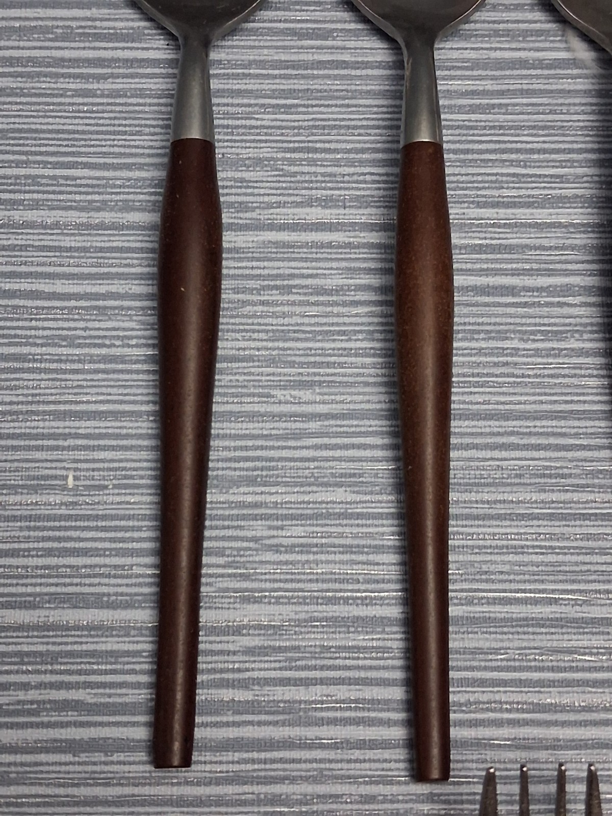Time Period Manufactured:1960-1969Original/Licensed Reproduction:OriginalDepartment:AdultBrand:UnbrandedNumber of Items in Set:20Type:SetSet Includes:Fork, Knife, SpoonStyle:Mid-Century ModernMaterial:Stainless SteelHandle Material:Faux WoodCountry of Origin:Japan