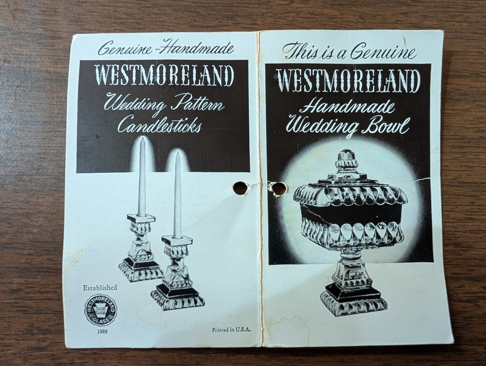 The MCM Westmoreland Cranberry Wedding Pedestal Bowl & Candle sticks is a vintage Art Deco style piece of decorative glassware, perfect for a wedding occasion. Made in America during the Mid 20th Century, this square-shaped bowl features a lidded design with a glossy finish and a footed pedestal base. The cranberry glass is patterned with a wedding-themed pattern, adding an elegant touch to any table setting. This original Westmoreland piece is a unique and stylish addition to any home decor collection.