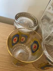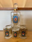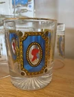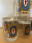 Unique regency style set comprising of a decanter measuring approx 21x9x9cm and 6 glasses measuring approx 9x7.5cm. Featuring a silhouette cameo woman print similar to Lady Wistledown of period drama Bridgerton Perfect addition to a home bar. Please see my other unique and collectible listings, any questions please feel free to message me. Advertised Elsewhere