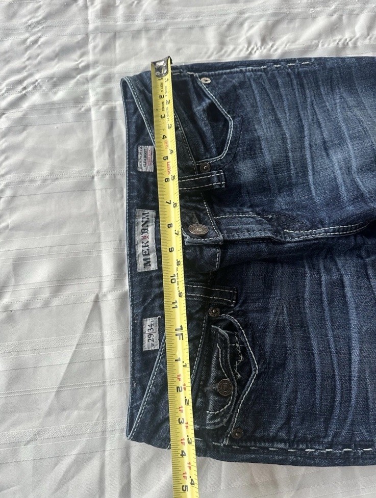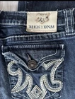 MEK DENIM Women's Slim Bootcut Jeans Dark Blue Embroidered Stretch Pockets