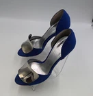 Make a bold, sophisticated statement with these stunning Italian‑made MELODY heels from Suolificio Sud. Crafted with premium materials and unmistakable boutique craftsmanship, this pair features a striking combination of royal blue satin, sculptural silver metal toe hardware, and a modern silver lucite stiletto heel. The result is a dramatic, art‑inspired silhouette that stands out effortlessly. Condition: Beautiful pre‑owned condition. Satin is vibrant and smooth, the silver hardware is reflective with minimal signs of wear, and the clear heels remain bright and clean. Footbeds and soles show light, normal wear. A rare and eye‑catching pair that has been well cared for. Details: · Brand: MELODY – Suolificio Sud · Size: 5.5 (35.5) · Color: Royal Blue with Silver Accents · Heel Height: 3.4 inches · Upper: Blue satin · Toe: Sculptural silver metal embellishment · Insole: Metallic silver · Heel: Silver lucite stiletto · Made in Korea · Boutique, small‑batch craftsmanship “Costruiti totalmente in materiali pregiati” (Italian for “constructed entirely with fine materials”) Why They’re Special: This pair blends Italian artistry with bold, modern design. The sculptural metal toe and clear heel create a high‑fashion look reminiscent of runway and editorial styling. Perfect for collectors, performers, stylists, or anyone who loves rare, statement footwear. Ships from a smoke‑free home and will be packed with care to protect the satin, hardware, and heel structure. We ship all orders within 1–3 business days after payment is received. Shipping Method: · USPS · Tracking is always provided · US shipping only, no international shipping at this time PAYMENT POLICY We accept: · Credit/Debit Cards · PayPal Payment is due within 48 hours of purchase unless prior arrangements are made. CONDITION & AUTHENTICITY POLICY · All items are thoroughly inspected before listing. · Any flaws or wear are clearly described and photographed · Vintage and pre-owned items may show natural signs of age · All designer/luxury items are guaranteed authentic (or professionally authenticated) CUSTOMER SERVICE & COMMUNICATION · We aim to respond to all messages within 24 hours (often sooner). Your satisfaction is our priority—please contact us with any questions before purchasing. FEEDBACK POLICY · We love positive feedback and always leave feedback for our buyers. · If there is ever an issue with your order, please contact us before leaving feedback so we can make it right.