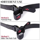 Features: 1.Made of environment friendly nylon material with belt buckle, soft and comfortable for daily use. 2.Quick release solid buckle and wide heavy-duty webbing, make this belt durable to use in outdoor activities. 3.Hole-less belt means you can adjust the length freely. 4.The buckle is non-slip, no need to repeated tight, non-friction to the belt. Description: Made of environment friendly nylon material with belt buckle, soft and comfortable for daily use. Specifications: Material: Nylon Buckle color: Black Belt color: Black Belt length: 125cm/49" Belt width: 3.8cm/1.5"' Weight:250g Note: Please choose the right size The belt can be modified according to your waist. Package Include: 1 * Waist Belt (Include Metal Buckle)