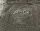 Cowboy Cool classic weathered grey t shirt. Soft cotton with a worn in feel for comfort. Drunk Donkey screen-print on front. Excellent pre owned condition! No holes, stains or signs of wear. Size L
