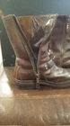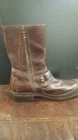 Elevate your style statement with these men's UGG Classic biker riding boots. Crafted with waterproof leather and a zipper closure, these boots are perfect for any occasion - from casual outings to activewear to travel. The round toe shape and adjustable strap with buckle accents ensure a comfortable fit, while the leather lining and insole provide added comfort. These vintage-inspired boots feature a solid pattern and a mid-calf shaft style, making them a versatile addition to your wardrobe. The boots come in a classic brown color and are available in US shoe size 13 and UK shoe size 12. BOOTS ARE 12" FROM BOTTOM OF HEEL TO TOP, FULL ZIPPER, ADJUSTABLE BUCKLED. SOME VERY LIGHT SCUFFING ON ZIPPER SIDES. BEAUTIFUL BOOTS !!!!