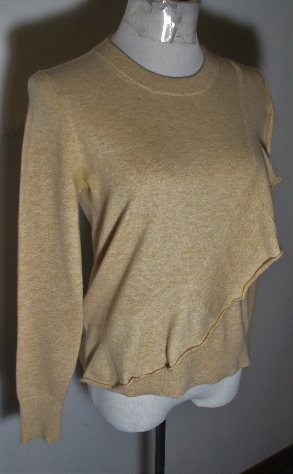 See my EBAY STORE at “SAMTPC53” to view 100’s more of my Women's SWEATERS!!! ( Combine Shipping: (on multiple items you pay full price on heaviest item first and then HALF PRICE shipping on ALL other items. Women's Wool Blend Sweater. Brand: MERCANTILE J. Crew. Description: women's wool blend MERCANTILE J. CREW long sleeve ruffle layered sweater, see pics. Color: Tan. Size: S (please see measurements). Measurements: 18" armpit to armpit, 22" shoulder to hem, 19" insleeve. Material: 45% Cotton, 35% Wool, 20% Nylon. Condition: Very Good condition.