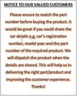 Excellent service. Contacted me to ensure it was the right part, receiving it within 24hrs of ordering. All as described at a reasonable price. Would recommend, thank you.