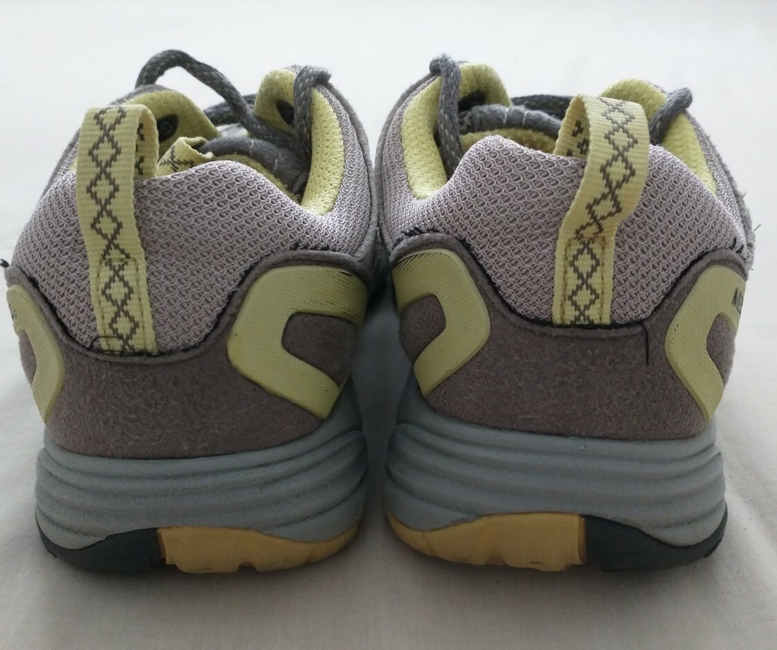 MERRELL Avian Light Ventilator Gray Yellow Hiking Shoes Womens Size 6 Vibram soles Good condition