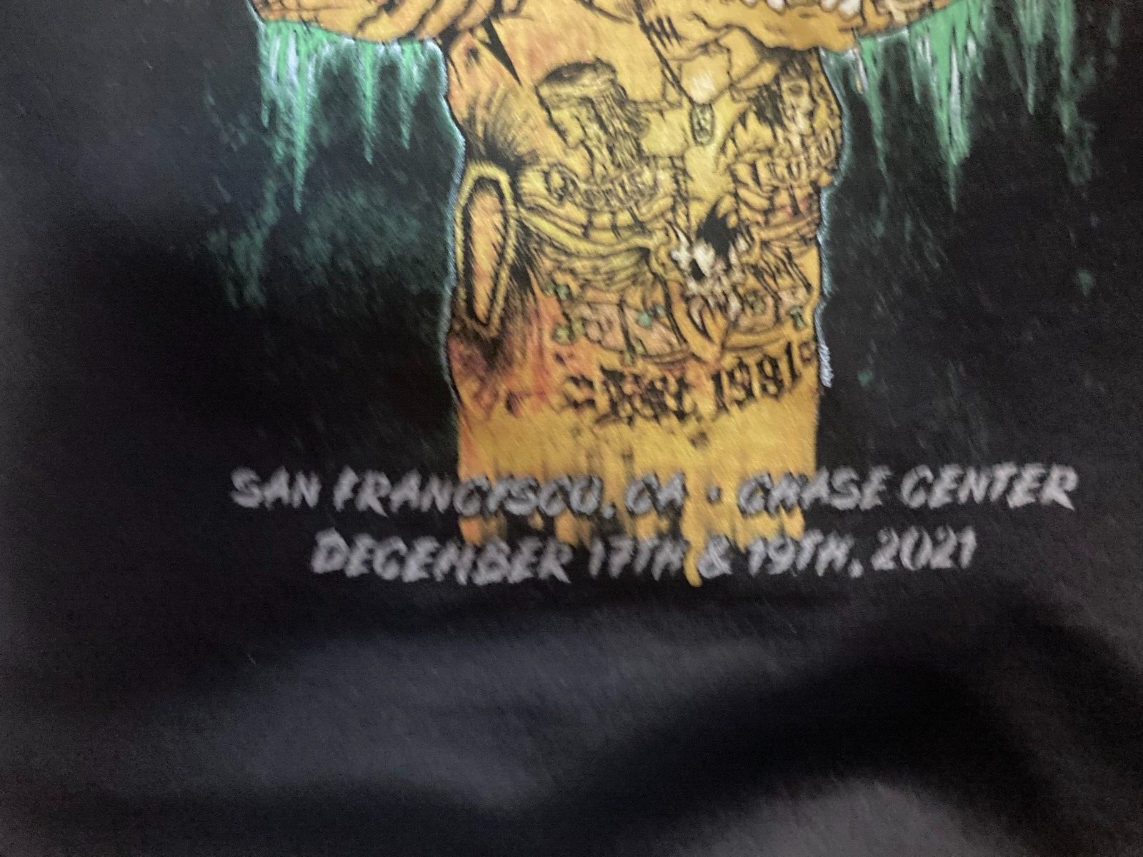Embrace the legacy of one of the most iconic heavy metal bands with the METALLICA 2021 SF 40 YEARS Still Reigning Tour sweatshirt. This large, double-sided printed pullover is a tribute to Metallica's unforgettable anniversary celebration. It features a classic crew neck and long sleeves, perfect for displaying your fandom during the cooler seasons of spring and summer.Crafted from soft, preshrunk cotton and produced in Mexico, this sweatshirt ensures comfort and durability. The graphic print is accented with the band's logo, making it a standout piece for any rock music enthusiast. Whether you're attending a concert or just out and about, this Metallica Pro Club exclusive is a must-have for fans of the band and music memorabilia collectors alike.