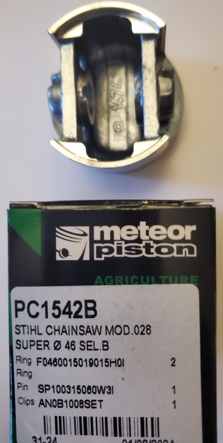 I HAVE BEEN USING METEOR IN MY OWN EQUIPTMENT FOR OVER 20 YEARS AND AM PROUD TO NOW BE AN APPROVED SUPPLIER FOR THE LAST TWO YEARS. I LEARNED VERY EARLY ON THAT A $13 OFF BRAND PISTON ONLY ENDS IN COSTLY DISASTER!!!! TRUST THE BEST AND ONLY USE THE BEST AND WHEN IT COMES TO AFTERMARKET PISTONS AND CYLINDERS METEOR IS THE ONE AND ONLY BEST!!!!! CHECK OUT OUR OTHER EBAY STORE https://www.ebay.com/usr/chainsawredeemer85 FOR THE REST OF OUR CURRENT METEOR INVENTORY AS WELL AS MANY OTHER GREAT CHAINSAW AND SMALL ENGINE PARTS. WE ARE WORKING FERVENTLY THROUGH MANY RECENT HARDSHIPS TO BUILD OUR INVENTORY SO IF WE DO NOT HAVE WHAT YOU NEED, WE SINCERELY APOLOGIZE SEE COMPLETELY FREE ENTERTAINING INSTRUCTIONAL VIDEOS ON MY YOUTUBE CHANNEL HERE: http://www.youtube.com/@chainsawredeemer85 (Most parts sellers who do instructional videos state you will receive a how to video ONLY AFTER you purchase their product NOT THIS GUY HERE I HAVE NEARLY 600 VIDEOS 85% OF WHICH ARE HOW TO) SHIPPING IS TYPICALLY SAME OR NEXT DAY VIA USPS GROUND ADVANTAGE. WE PACK THIS PRODUCT VERY WELL TO ENSURE IT ARRIVES SAFE AND UNDAMAGED. EACH BOX IS OPENED PRIOR TO BEING SENT TO INSPECT ALL PARTS ARE INCLUDED AND THERE IS NO FLAWS. WE SHIP INTERNATIONALLY TO COUNTRIES INCLUDED IN EBAYS INTERNATIONAL SHIPPING PROGRAM PLEASE ENSURE FITMENT PRIOR TO PURCHASE, ASK ANY QUESTIONS YOU MAY HAVE AS WELL. WE TRY OUR VERY BEST TO GIVE YOU AN ANSWER PROMPTLY AND ENSURE OUR FACTS ARE CHECKED MANUFACTURER OFFERS A 1 YEAR WARRANTY AGAINST MANUFACTURER DEFECT. This listing is for one Meteor piston kit including the piston, cast iron caber rings, wrist pin, and C-clips. It fits STIHL Chainsaw Models 028 SUPER 028AV SUPER 028WB SUPER 46MM -------. METEOR MEETS AND OFTEN TIMES ESCEEDS OEM QUALITY AND PERFORMANCE. Their products are made in Italy using the highest quality materials available. The cast iron caber rings are the BEST on the market, durable and strong as h*ll ensuring they last you a lifetime!!!
