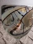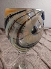 The Mexican Cocoa/Vanilla Gold Swirl Wine Goblet is a hand-blown glass goblet featuring a rustic Mexican design. Each goblet has a swirl pattern in brown and gold colors, with a capacity of 12 oz. The goblet has a height of 7 1/4" and a width of 3 5/8", making them suitable for all occasions. The glassware is from Mexico and should be hand washed only, adding to its authentic and unique appeal. Perfect for enjoying wine or other beverages in a stylish and elegant manner. Like new condition. No chips or cracks