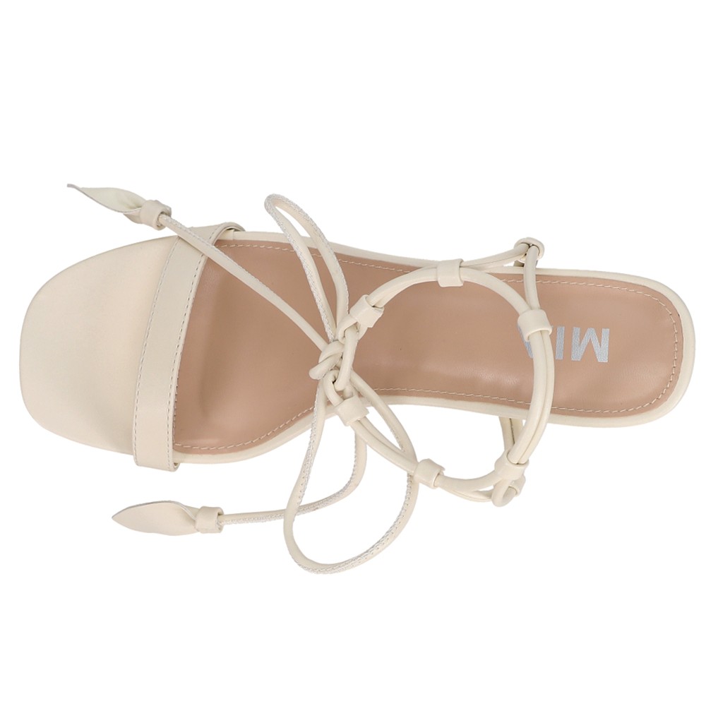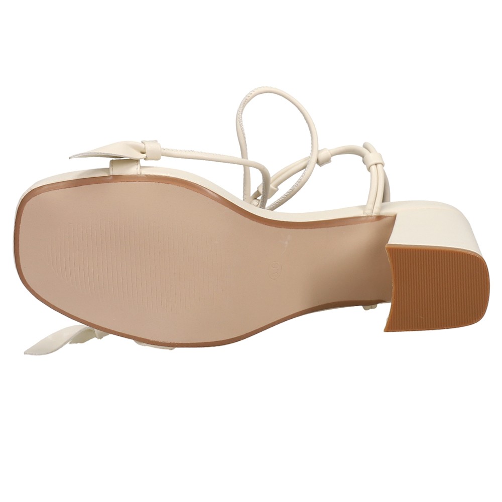 Muna Strappy Block Heel Sandals Product Details Vegan leather upper Adjustable strappy knot around ankle Contoured footbed 3.5 inch heel Color: Bone The Muna Lace Up Block Heel Sandals will be your new favorite shoes this season and will give a fantastic touch to any outfit. Additional Details Manufacturer Color: Bone Color: Off White Occasion: Dress Gender: Womens Age: Adult Brand: MIA