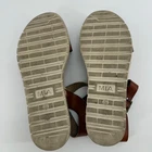 Small section of glue missing behind a section of rope causing minor separation as pictured. Women's brown leather ankle strap sandals with a comfortable espadrille platform. These sandals feature a simple, chic design with a single strap across the toes and an adjustable ankle strap for a secure fit. The platform sole is wrapped in natural jute for a classic espadrille look, offering added height and style. Measurements: • Insole length: 9.75 in • Platform height: 1.5 in • Heel height: 2 in Style: Espadrille Department: Women Upper Material: Leather UK Shoe Size: 6.5 AU Shoe Size: 6.5 Heel Style: Wedge EU Shoe Size: 39.5 Features: Buckle, Adjustable Strap, Ankle Strap, Cushioned, Comfort Closure: Buckle Pattern: Solid Heel Height: Mid (2-2.9 in) Type: Sandal Insole Material: Leather Keywords: MIA sandals, leather sandals, platform sandals, espadrille, ankle strap, brown sandals, women's footwear, summer shoes, wedge sandals, casual sandals, chic sandals
