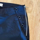 MICHAEL Michael Kors black dress pants with stylish silver-tone zipper detail along the side seam. These pants offer a polished look with decorative ring accents at the waist. The classic silhouette and functional design make them a versatile addition to any wardrobe. Measurements: • Waist: 15 in • Inseam: 29.5 in Style: Dress Pants Department: Women Material: Viscose, Nylon, Elastane Leg Style: Straight Type: Pants Fabric Type: Ponte Features: Stretch, Lightweight, Breathable, Easy Care Closure: Zip, Button Pattern: Solid Accents: Zipper, Logo, Button Occasion: Business, Casual, Workwear Waist Size: 30 in Fit: Slim Keywords: Michael Kors, dress pants, black pants, women's trousers, zipper detail, career wear, tailored pants, MK pants, pull on pants, smart casual, office attire Item is preowned, effort has been made to ensure all flaws are displayed photos serve as additional description Sizing varies by manufacturer and time period, please see measurements.