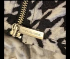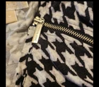 MICHAEL Michael Kors Black and White houndstooth check knit top, size medium. Silvertone zippers at shoulders, flirty flared peplum lower edge. Size medium with long sleeves measures 18" flat underarms, 17" waist, flared through hips. High-low top is long length, 25" long from back neck to hem, about 3" longer at sides. Fabric is viscose knit. Hand wash, dry flat. In excellent condition.