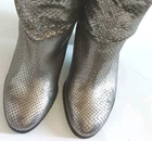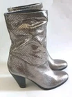 MICHAEL Michael Kors DIVIA Boots Textured Silver Size 6.5 Textured Metallic Silver Leather Disco 2.5" Stacked Heel with Logo Leather Footbed Excellent Like New Condition